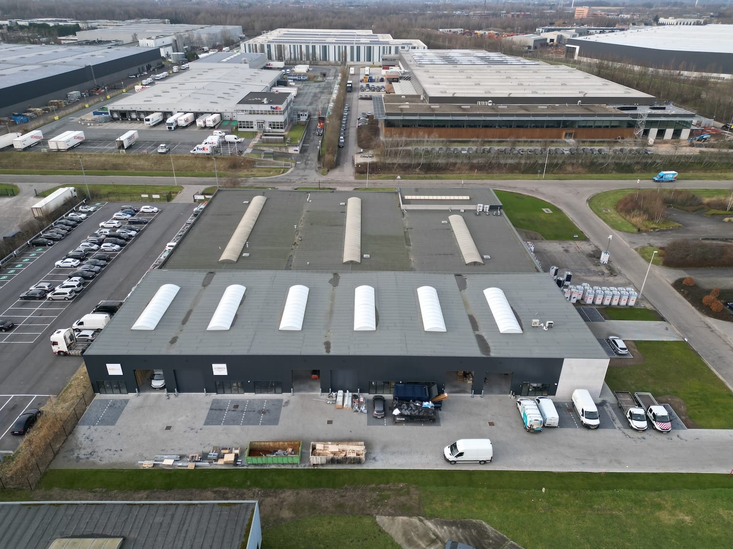 Het nieuwe complex omvat 1.654 m² moderne magazijnruimte en 170 m² kwaliteitsvolle kantoorruimte, ontworpen volgens dezelfde hoge standaarden als het bestaande gebouw op Scheldeweg 8. De gebouwen werden ontwikkeld met het oog op een latere BREEAM-certificatie ‘Very Good’, met onder meer optimale isolatie en regenwaterrecuperatie.